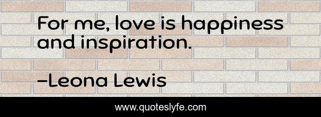 This page presents the quote "For me, love is happiness and inspiration.". Author of this quote is Leona Lewis. This quote is about me, love, affection, love is,.