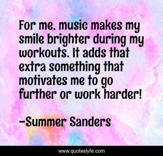 "Summer Sanders Quotes." Quoteslyfe.com, 2025. Mon. 08 Dec. 2025. <https://www.quoteslyfe.com/quote/For-me-music-makes-my-smile-brighter-324325>.