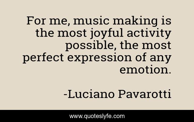 This page presents the quote "For me, music making is the most joyful activity possible, the most perfect expression of any emotion.". Author of this quote is Luciano Pavarotti. This quote is about me, perfect, emotion,.