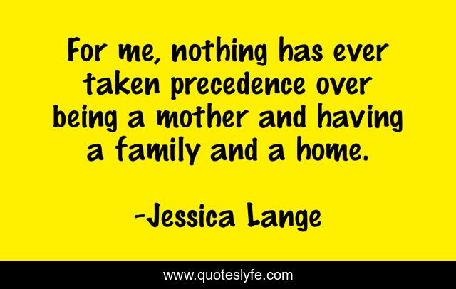This page presents the quote "For me, nothing has ever taken precedence over being a mother and having a family and a home.". Author of this quote is Jessica Lange. This quote is about me, home, mother,.