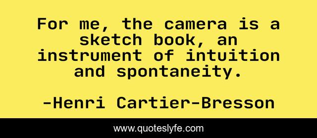 This page presents the quote "For me, the camera is a sketch book, an instrument of intuition and spontaneity.". Author of this quote is Henri Cartier-Bresson. This quote is about photography, camera, artist,.