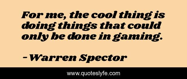 This page presents the quote "For me, the cool thing is doing things that could only be done in gaming.". Author of this quote is Warren Spector. This quote is about me, done,.