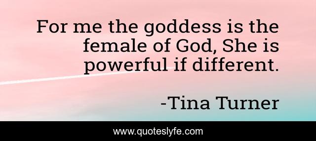 This page presents the quote "For me the goddess is the female of God, She is powerful if different.". Author of this quote is Tina Turner. This quote is about me, powerful, she,.