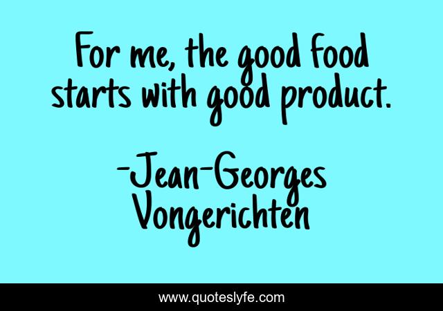 This page presents the quote "For me, the good food starts with good product.". Author of this quote is Jean-Georges Vongerichten. This quote is about me, good, good food,.