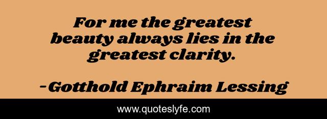 This page presents the quote "For me the greatest beauty always lies in the greatest clarity.". Author of this quote is Gotthold Ephraim Lessing. This quote is about me, clarity, greatest,.