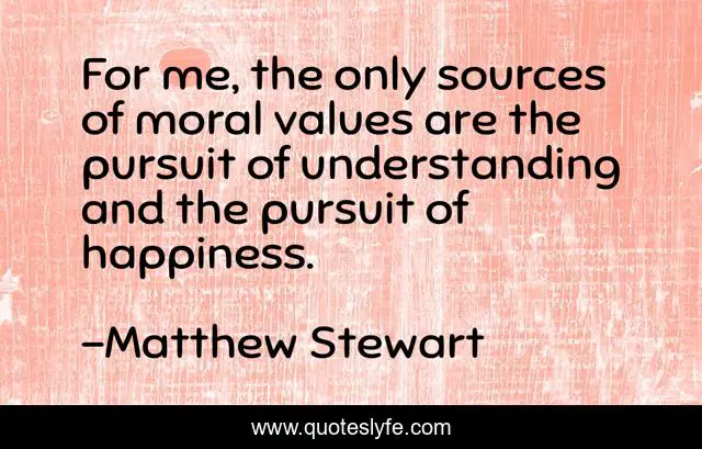 This page presents the quote "For me, the only sources of moral values are the pursuit of understanding and the pursuit of happiness.". Author of this quote is Matthew Stewart. This quote is about me, values, understanding,.