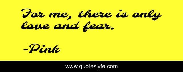 This page presents the quote "For me, there is only love and fear.". Author of this quote is Pink. This quote is about me, only love, love, affection,.