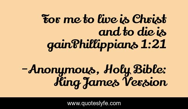 "Anonymous, Holy Bible: King James Version Quotes." Quoteslyfe.com, 2025. Sun. 07 Dec. 2025. <https://www.quoteslyfe.com/quote/For-me-to-live-is-Christ-and-134284>.