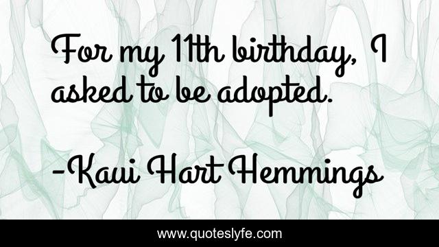 This page presents the quote "For my 11th birthday, I asked to be adopted.". Author of this quote is Kaui Hart Hemmings. This quote is about asked, adopted,.