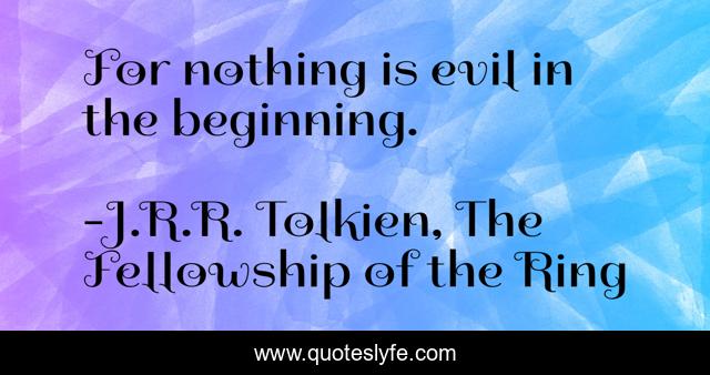 This page presents the quote "For nothing is evil in the beginning.". Author of this quote is J.R.R. Tolkien, The Fellowship of the Ring. This quote is about fantasy, fate, mortality,.