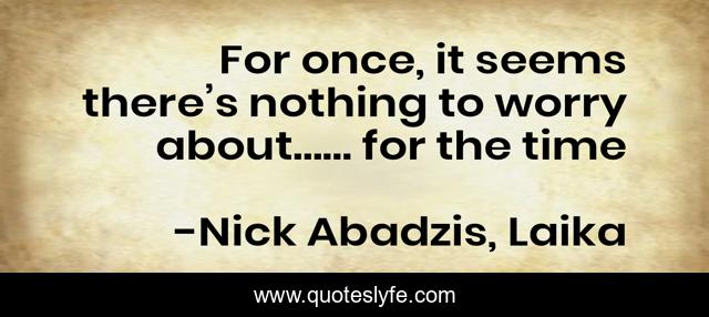 This page presents the quote "For once, it seems there’s nothing to worry about…… for the time". Author of this quote is Nick Abadzis, Laika. This quote is about life, change,.