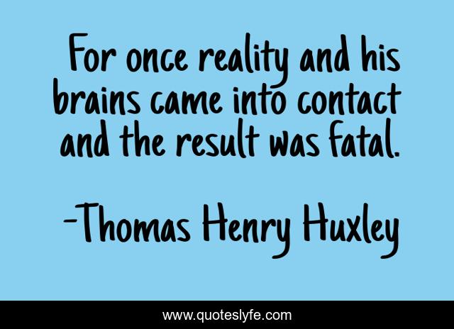 This page presents the quote "For once reality and his brains came into contact and the result was fatal.". Author of this quote is Thomas Henry Huxley. .