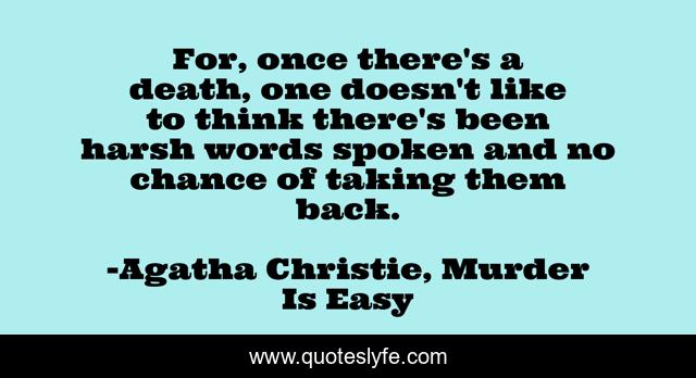 This page presents the quote "For, once there's a death, one doesn't like to think there's been harsh words spoken and no chance of taking them back.". Author of this quote is Agatha Christie, Murder Is Easy. This quote is about truth, hypocrisy,.