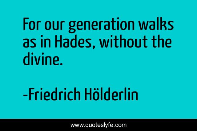 This page presents the quote "For our generation walks as in Hades, without the divine.". Author of this quote is Friedrich Hölderlin. .