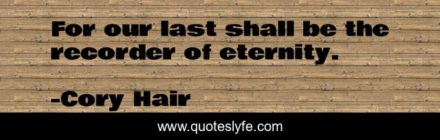 This page presents the quote "For our last shall be the recorder of eternity.". Author of this quote is Cory Hair. This quote is about eternity, recorder, time,.