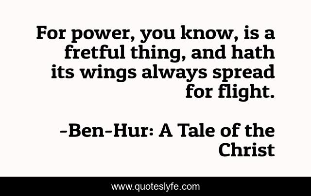This page presents the quote "For power, you know, is a fretful thing, and hath its wings always spread for flight.". Author of this quote is Ben-Hur: A Tale of the Christ. .