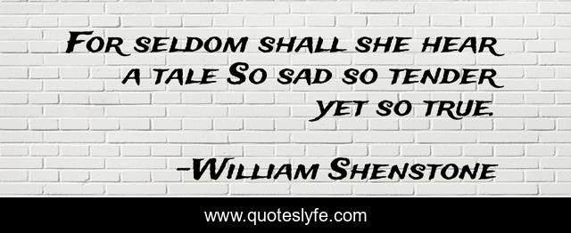 This page presents the quote "For seldom shall she hear a tale So sad so tender yet so true.". Author of this quote is William Shenstone. This quote is about telling, story,.