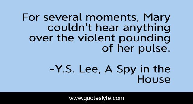 This page presents the quote "For several moments, Mary couldn't hear anything over the violent pounding of her pulse.". Author of this quote is Y.S. Lee, A Spy in the House. This quote is about excitement, young-adult-fiction, adventure, thriller,.