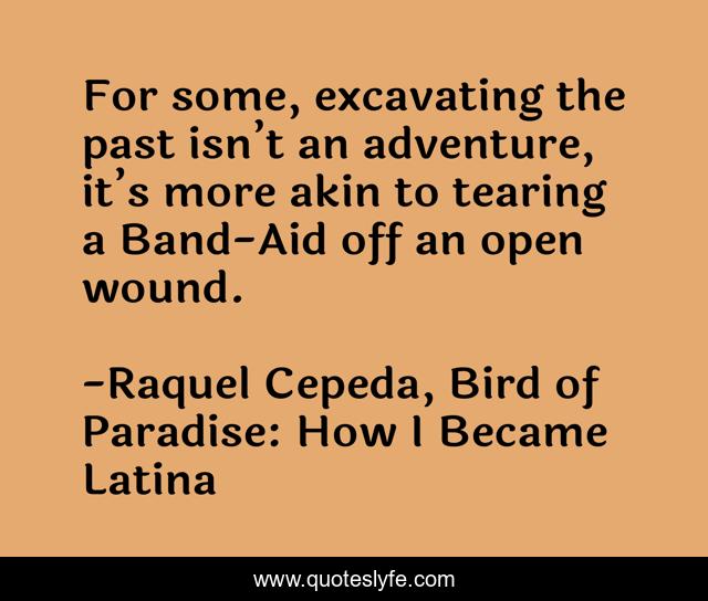 This page presents the quote "For some, excavating the past isn’t an adventure, it’s more akin to tearing a Band-Aid off an open wound.". Author of this quote is Raquel Cepeda, Bird of Paradise: How I Became Latina. This quote is about forgetting-the-past, the-past, forgetting, open-wounds, excavating-the-past, history,.