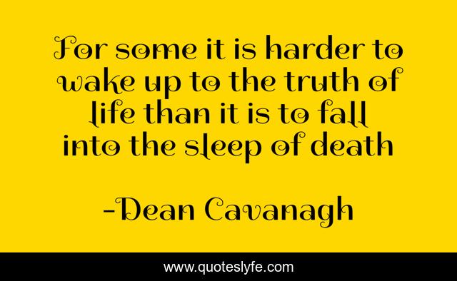 This page presents the quote "For some it is harder to wake up to the truth of life than it is to fall into the sleep of death". Author of this quote is Dean Cavanagh. This quote is about death, sleep, truth,.