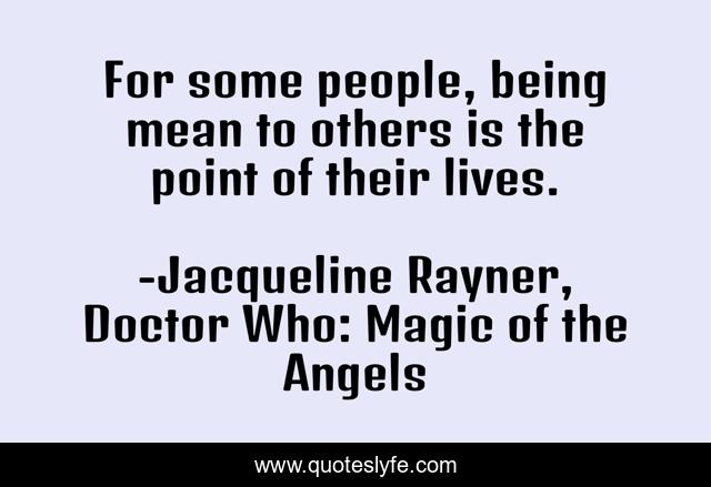 This page presents the quote "For some people, being mean to others is the point of their lives.". Author of this quote is Jacqueline Rayner, Doctor Who: Magic of the Angels. .