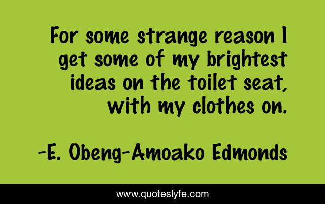 This page presents the quote "For some strange reason I get some of my brightest ideas on the toilet seat, with my clothes on.". Author of this quote is E. Obeng-Amoako Edmonds. This quote is about thinking, writer, creativity,.