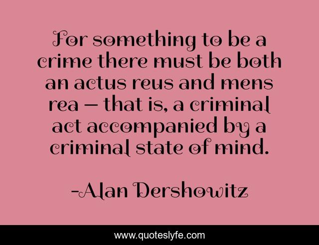 This page presents the quote "For something to be a crime there must be both an actus reus and mens rea — that is, a criminal act accompanied by a criminal state of mind.". Author of this quote is Alan Dershowitz. .