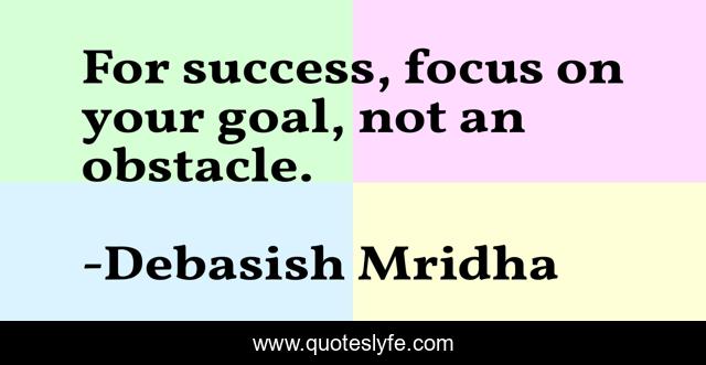 This page presents the quote "For success, focus on your goal, not an obstacle.". Author of this quote is Debasish Mridha. This quote is about life, love, knowledge, inspirational, intelligence, philosophy, wisdom, quotes, affection,.