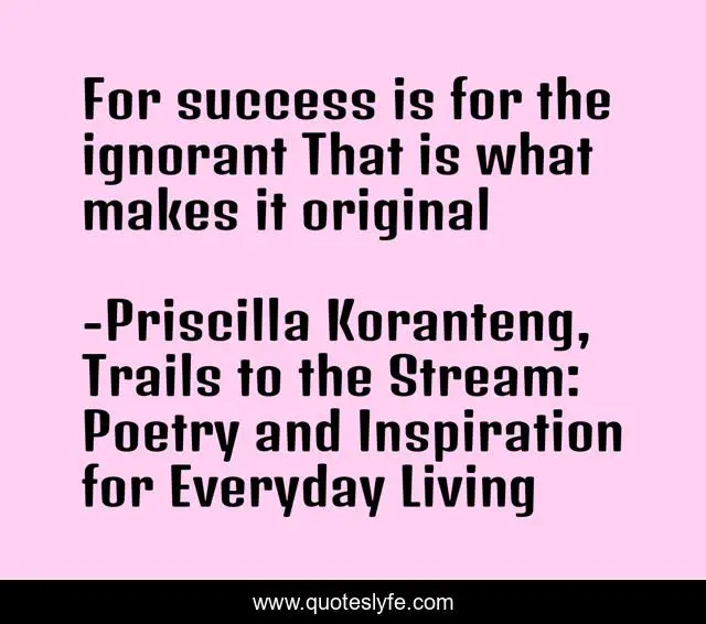 "Priscilla Koranteng, Trails to the Stream: Poetry and Inspiration for Everyday Living Quotes." Quoteslyfe.com, 2025. Fri. 05 Dec. 2025. <https://www.quoteslyfe.com/quote/For-success-is-for-the-ignorant-That-255528>.