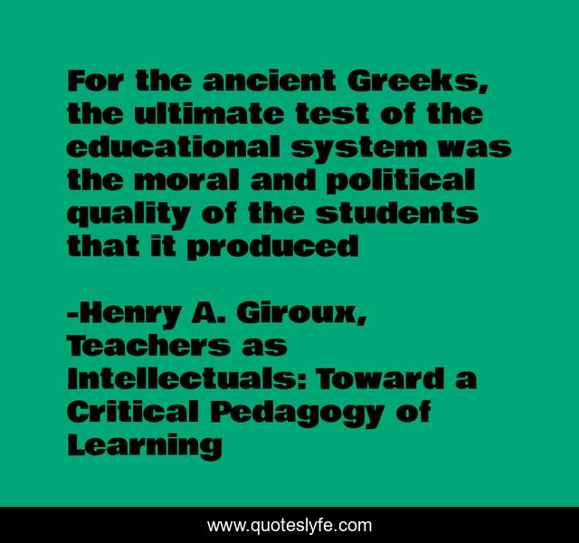 "Henry A. Giroux, Teachers as Intellectuals: Toward a Critical Pedagogy of Learning Quotes." Quoteslyfe.com, 2025. Sat. 06 Dec. 2025. <https://www.quoteslyfe.com/quote/For-the-ancient-Greeks-the-ultimate-test-33580>.
