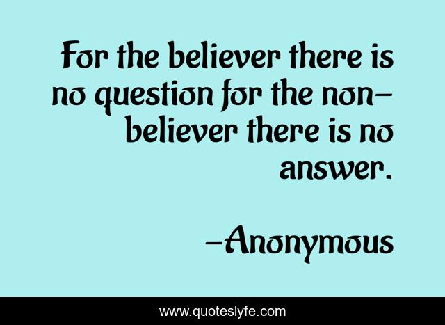 This page presents the quote "For the believer there is no question for the non-believer there is no answer.". Author of this quote is Anonymous. This quote is about faith, unity,.