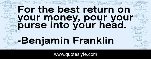 This page presents the quote "For the best return on your money, pour your purse into your head.". Author of this quote is Benjamin Franklin. This quote is about learning, self-development,.