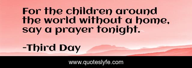 This page presents the quote "For the children around the world without a home, say a prayer tonight.". Author of this quote is Third Day. This quote is about music, children, prayer,.