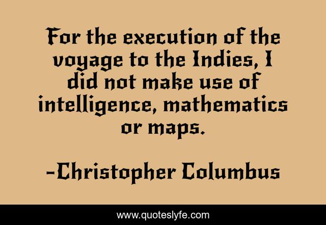 This page presents the quote "For the execution of the voyage to the Indies, I did not make use of intelligence, mathematics or maps.". Author of this quote is Christopher Columbus. This quote is about mathematics, execution,.