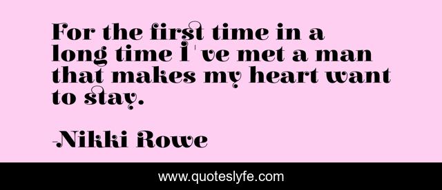 This page presents the quote "For the first time in a long time I've met a man that makes my heart want to stay.". Author of this quote is Nikki Rowe. This quote is about life, love, destiny, fate, love-at-first-sight, love-story, affection,.