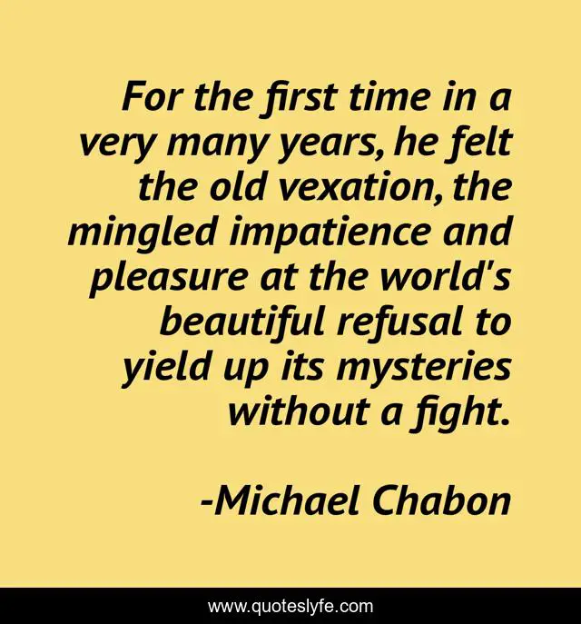 This page presents the quote "For the first time in a very many years, he felt the old vexation, the mingled impatience and pleasure at the world's beautiful refusal to yield up its mysteries without a fight.". Author of this quote is Michael Chabon. This quote is about deduction, mystery, sherlock-holmes,.