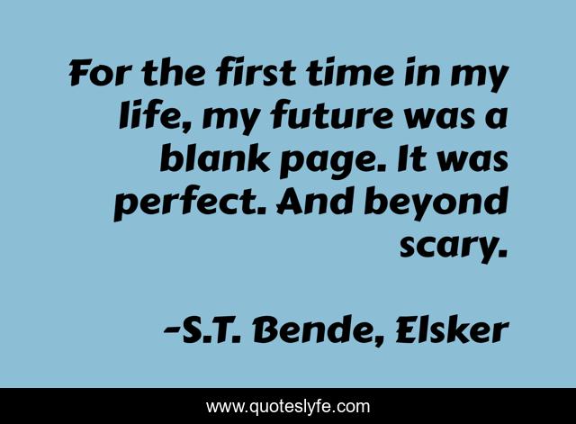 This page presents the quote "For the first time in my life, my future was a blank page. It was perfect. And beyond scary.". Author of this quote is S.T. Bende, Elsker. This quote is about elsker, future, life,.