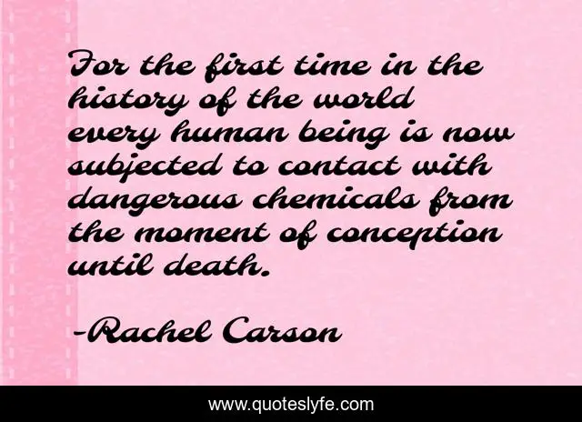 This page presents the quote "For the first time in the history of the world every human being is now subjected to contact with dangerous chemicals from the moment of conception until death.". Author of this quote is Rachel Carson. .