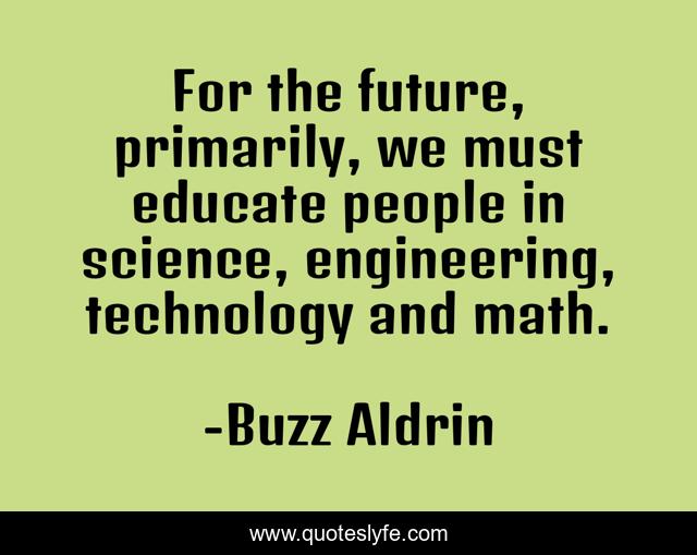 This page presents the quote "For the future, primarily, we must educate people in science, engineering, technology and math.". Author of this quote is Buzz Aldrin. This quote is about future, technology,.
