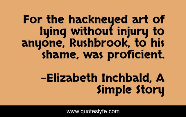 This page presents the quote "For the hackneyed art of lying without injury to anyone, Rushbrook, to his shame, was proficient.". Author of this quote is Elizabeth Inchbald, A Simple Story. This quote is about humorous, funny, comedy, lying,.