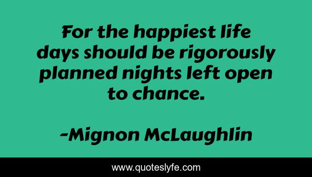 This page presents the quote "For the happiest life days should be rigorously planned nights left open to chance.". Author of this quote is Mignon McLaughlin. .