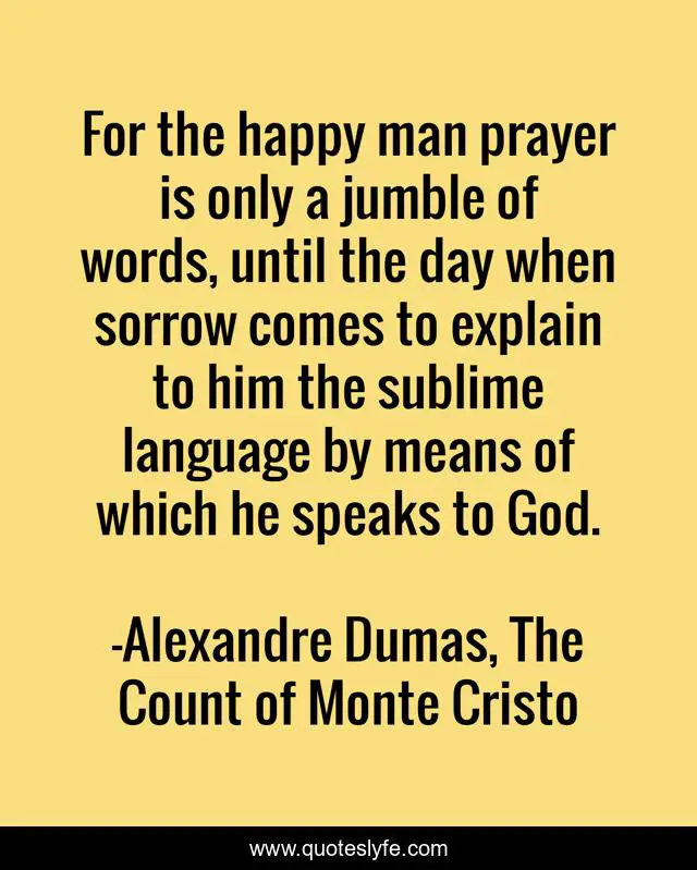 This page presents the quote "For the happy man prayer is only a jumble of words, until the day when sorrow comes to explain to him the sublime language by means of which he speaks to God.". Author of this quote is Alexandre Dumas, The Count of Monte Cristo. This quote is about god, sorrow, religious, prayer,.