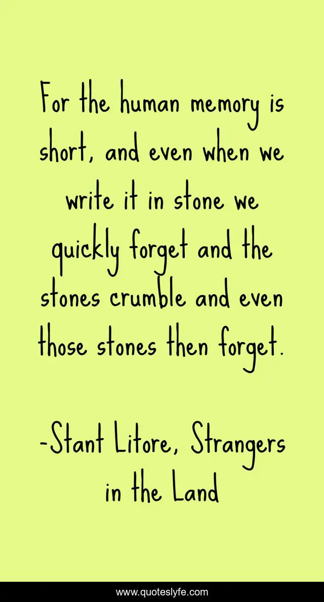 "Stant Litore, Strangers in the Land Quotes." Quoteslyfe.com, 2025. Fri. 05 Dec. 2025. <https://www.quoteslyfe.com/quote/For-the-human-memory-is-short-and-123746>.