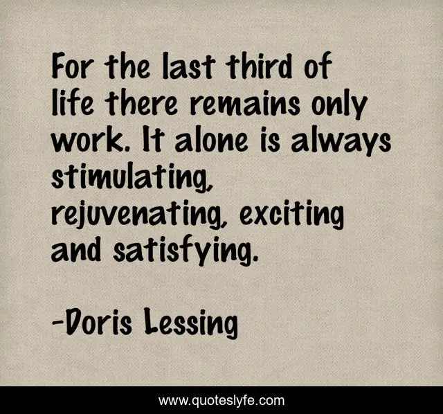 This page presents the quote "For the last third of life there remains only work. It alone is always stimulating, rejuvenating, exciting and satisfying.". Author of this quote is Doris Lessing. This quote is about always, life, work,.