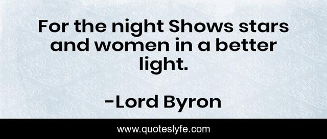 This page presents the quote "For the night Shows stars and women in a better light.". Author of this quote is Lord Byron. .