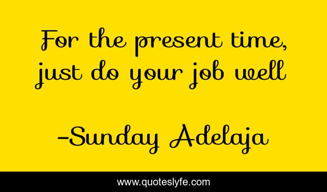 This page presents the quote "For the present time, just do your job well". Author of this quote is Sunday Adelaja. This quote is about job, work, diligence, time,.