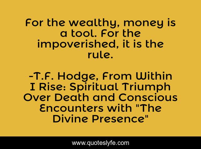 "T.F. Hodge, From Within I Rise: Spiritual Triumph Over Death and Conscious Encounters with "The Divine Presence" Quotes." Quoteslyfe.com, 2025. Fri. 05 Dec. 2025. <https://www.quoteslyfe.com/quote/For-the-wealthy-money-is-a-tool-80369>.