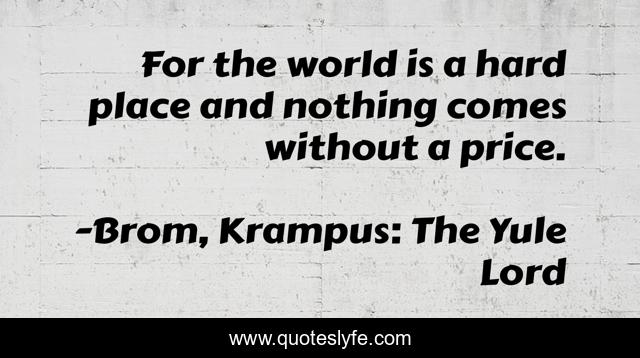 This page presents the quote "For the world is a hard place and nothing comes without a price.". Author of this quote is Brom, Krampus: The Yule Lord. .