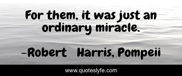 This page presents the quote "For them, it was just an ordinary miracle.". Author of this quote is Robert Harris, Pompeii. This quote is about ancient-roman-culture, water, pompeii, miracle,.