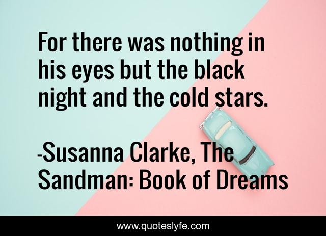 This page presents the quote "For there was nothing in his eyes but the black night and the cold stars.". Author of this quote is Susanna Clarke, The Sandman: Book of Dreams. This quote is about eyes, star, neil-gaiman, morpheus, black, stars, night, cold, sandman,.